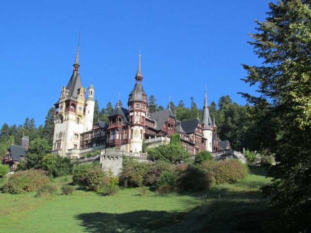 I. Károly román király építtette. A helyválasztást valószínű a környék páratlan festői szépsége, valamint az akkori Románia és az Osztrák-Magyar Monarchia határának közelsége is sugallhatta. A király talán arra gondolt, ha egyszer Erdély egyesül a Román királysággal, a kastély az ország szívében fog elhelyezkedni. Az építkezés 1873-ban kezdődött, háromszáz munkás két évig dolgozott rajta és az uralkodó személyesen felügyelte a munkálatokat. Az építészeknek óriási kihívás volt a Déli-Kárpátok hegyvonulata mellett kialakítani az építésre alkalmas terepet. A kastély alapkőletételére 1875-ben került sor. A kor technikai fejlettségéhez képest rendkívül modern épületgépészeti elemekkel rendelkezett. Az előcsarnok mozgatható üvegtetejét egy elektromotor tette lehetővé. Innen szellőztették az egész építményt. 1883-ban központi fűtésrendszert alakítottak ki. Saját elektromos erőműve segítségével az első volt az európai kastélyok között, amely vezetékes árammal rendelkezett. 1883-ban a kastélyt hivatalosan is felszentelték. A királyi család nyári rezidenciája lett. Szívesen töltötték itt az idejüket kora tavasztól késő őszig.
