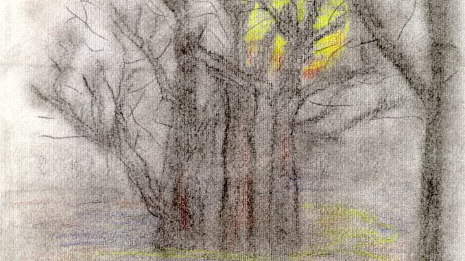 Mozdulatlan csupasz ágak közül